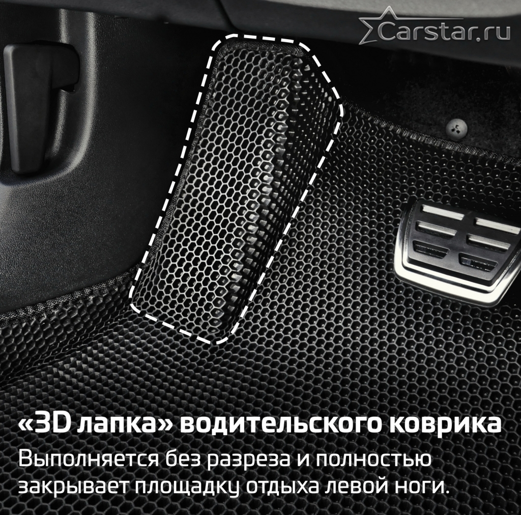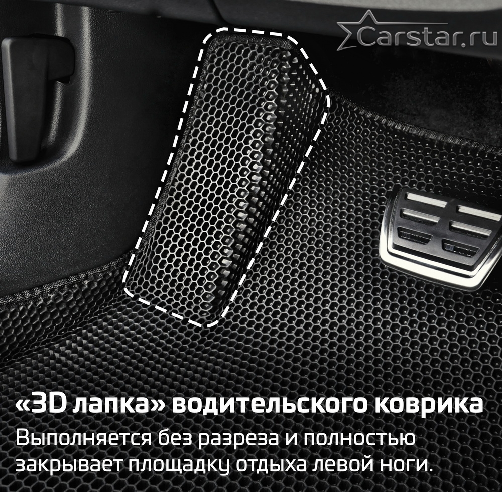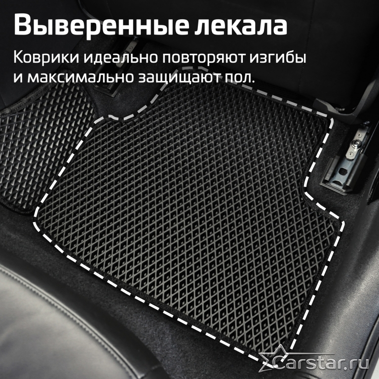 Коврики EVA надёжно крепятся с помощью оригинальных систем фиксации. Благодаря клипсам и липучке коврики защищены от смещений, что обеспечивает комфорт и безопасность вождения. Максимальное удобство также достигается точными, улучшенными лекалами для каждого автомобиля.