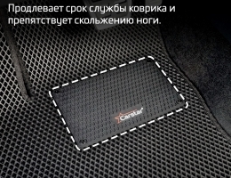 Изделия EVA имеют специальную ячеистую структуру (ячейки глубиной 8 мм), которая эффективно задерживает грязь и воду, оставляя вашу обувь и поверхность обивки салона или багажника абсолютно чистыми. Также эти ячейки очень легко и быстро очищаются без применения специальных инструментов, в том числе, при помощи бесконтактной мойки.
